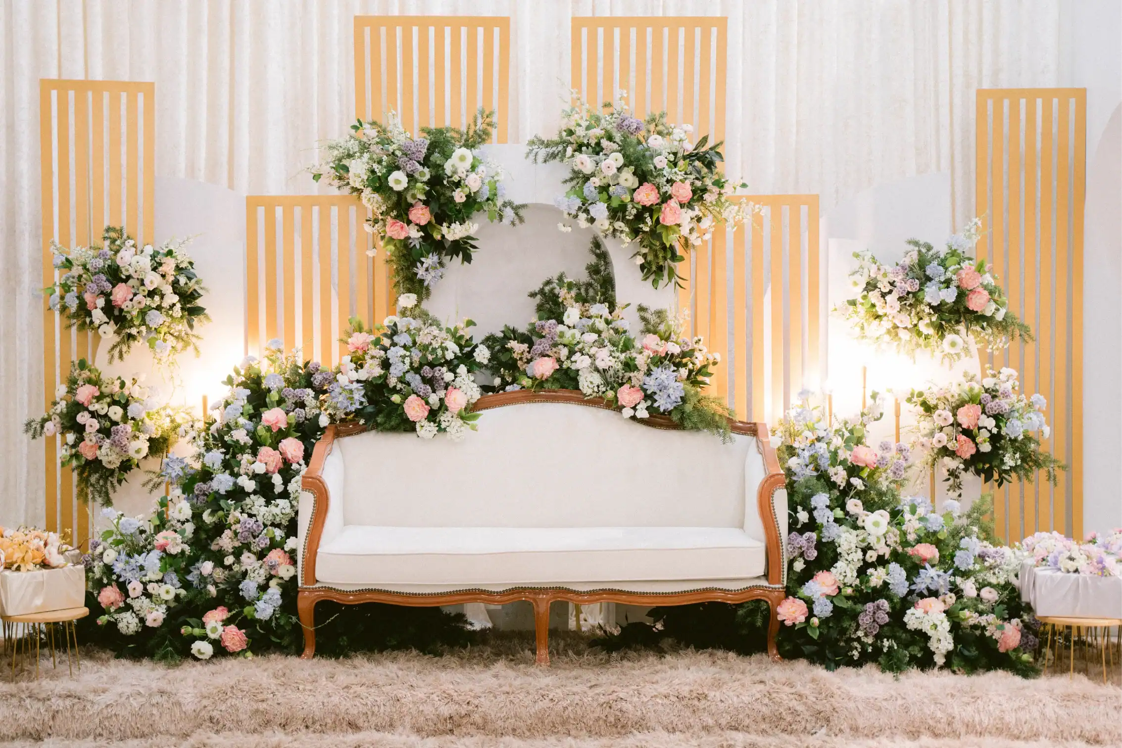 Rekaan bertemakan gabungan moden dan Era 70 dengan tema warna latar putih dan klasik menjadikan pernikahan anda kelihatan sangat ekslusif